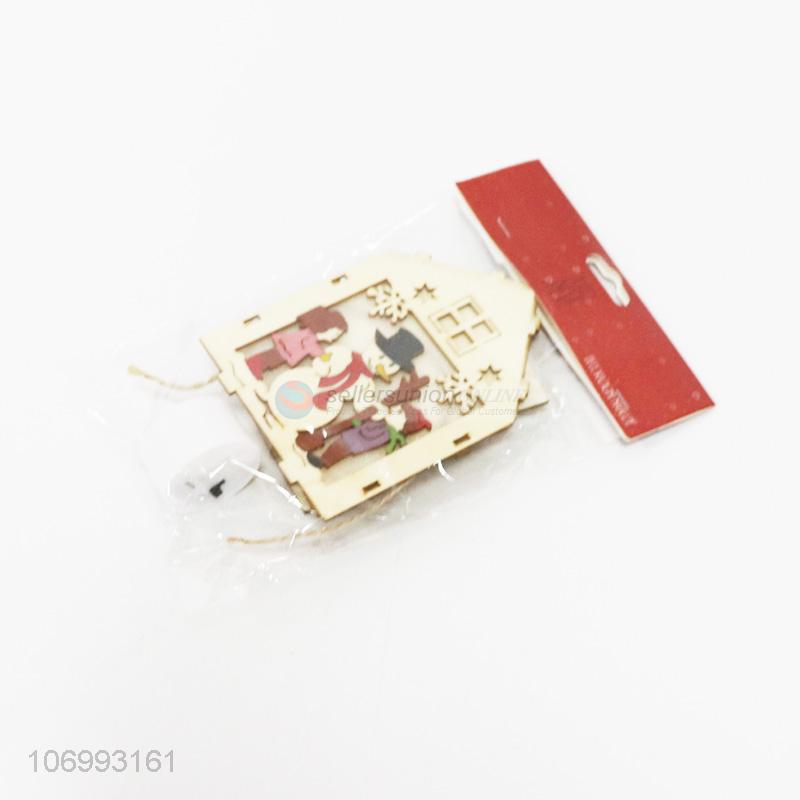 Promotional Christmas ornaments hanging led light up wooden house lamp