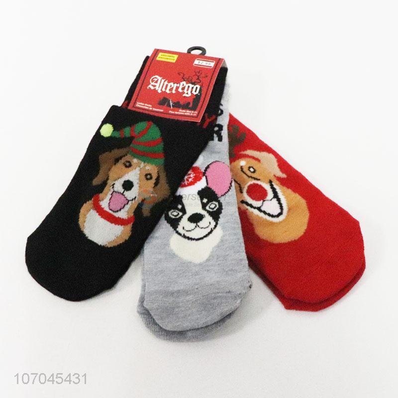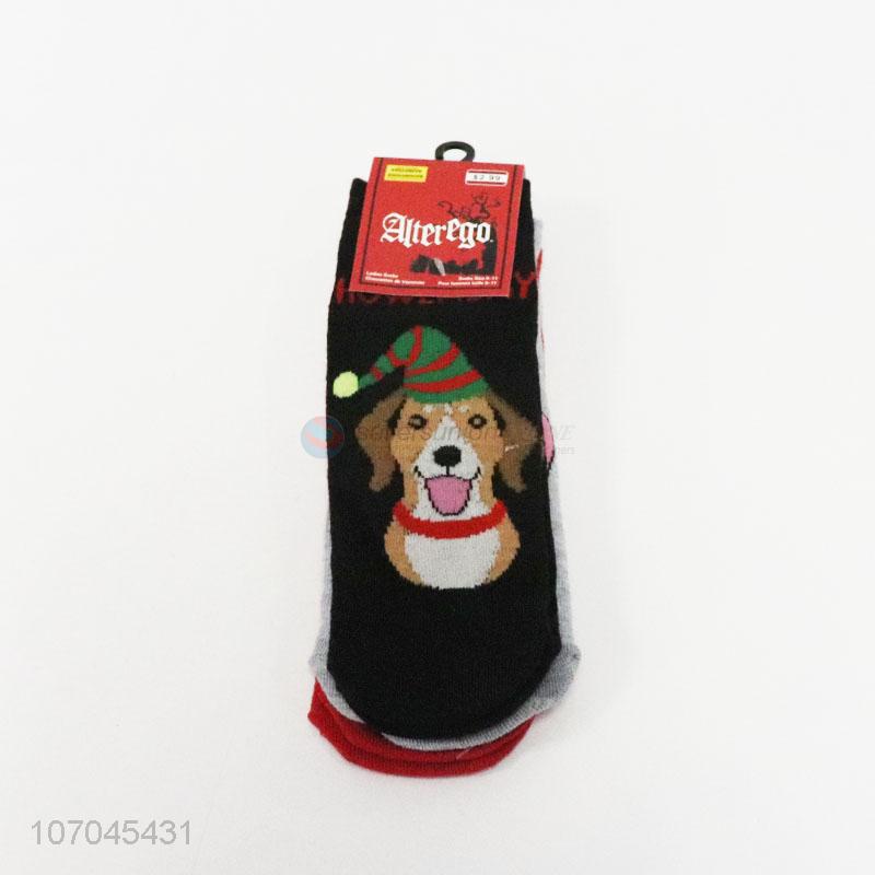 New design 3pairs cartoon dog pattern kids knitted crew socks