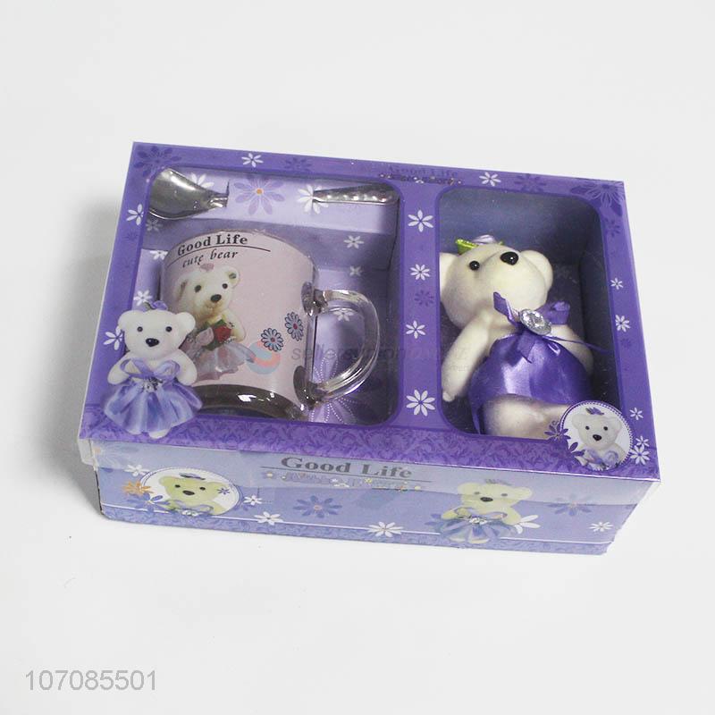 Factory sell valentines gift plush bear toy and glass cup set
