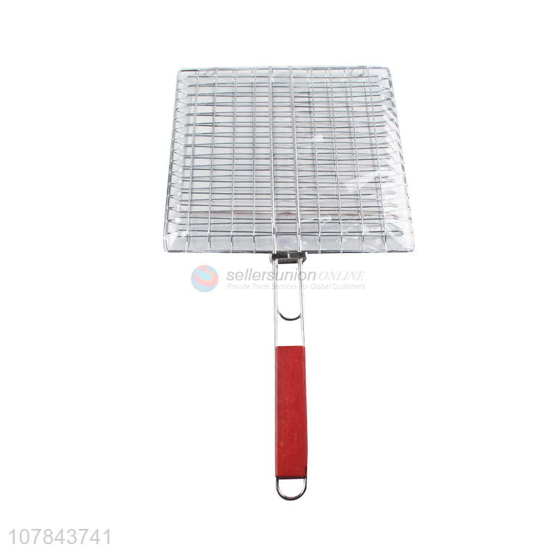 China supplier bbq steak grill basket with wooden handle