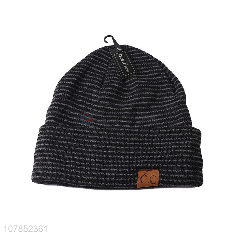 Private label women men knitting striped beanies winter thick bonnet
