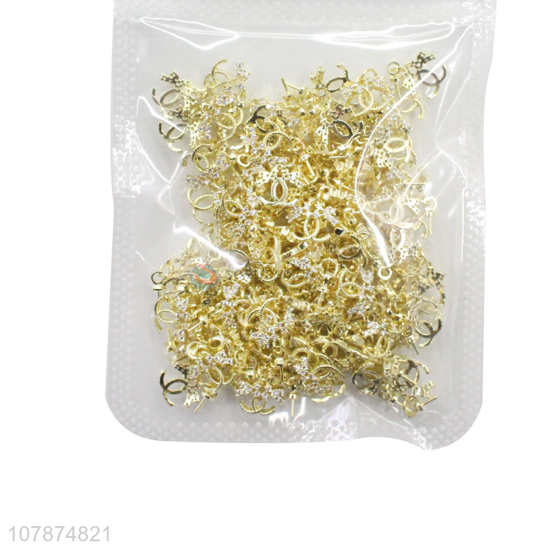 Yiwu Wholesale Golden Boxed Metal Nail Sticker Diamond Set