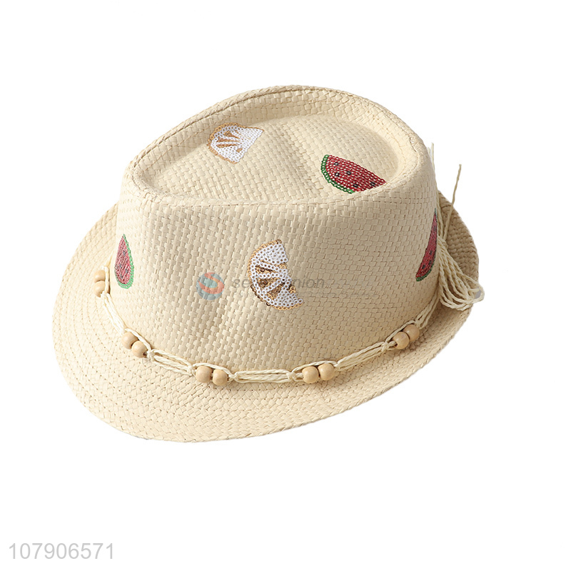 Wholesale creative fruit sequin straw hat beach fedora panama sun hat