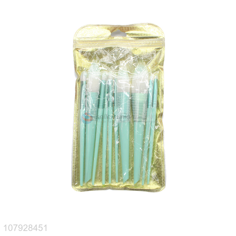 Hot selling green plastic makeup brush ladies makeup tools set