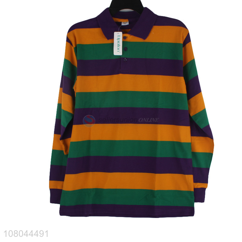 High quality green stripe men long-sleeved T-shirt