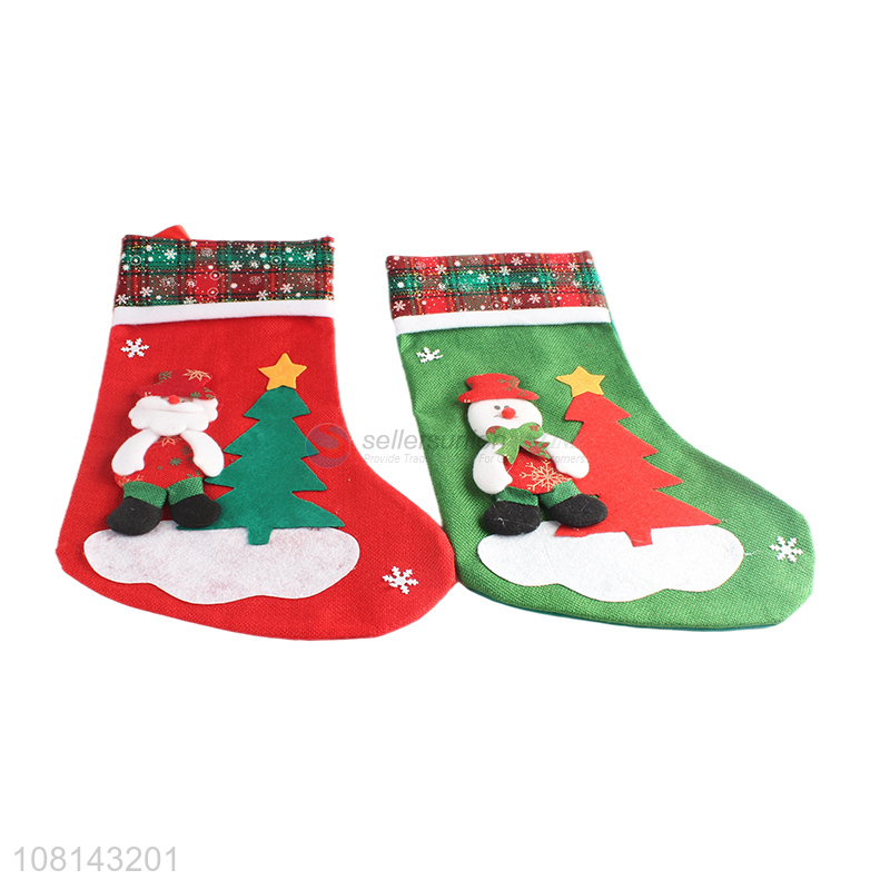 Factory price linen cartoon Christmas stocking for decoration
