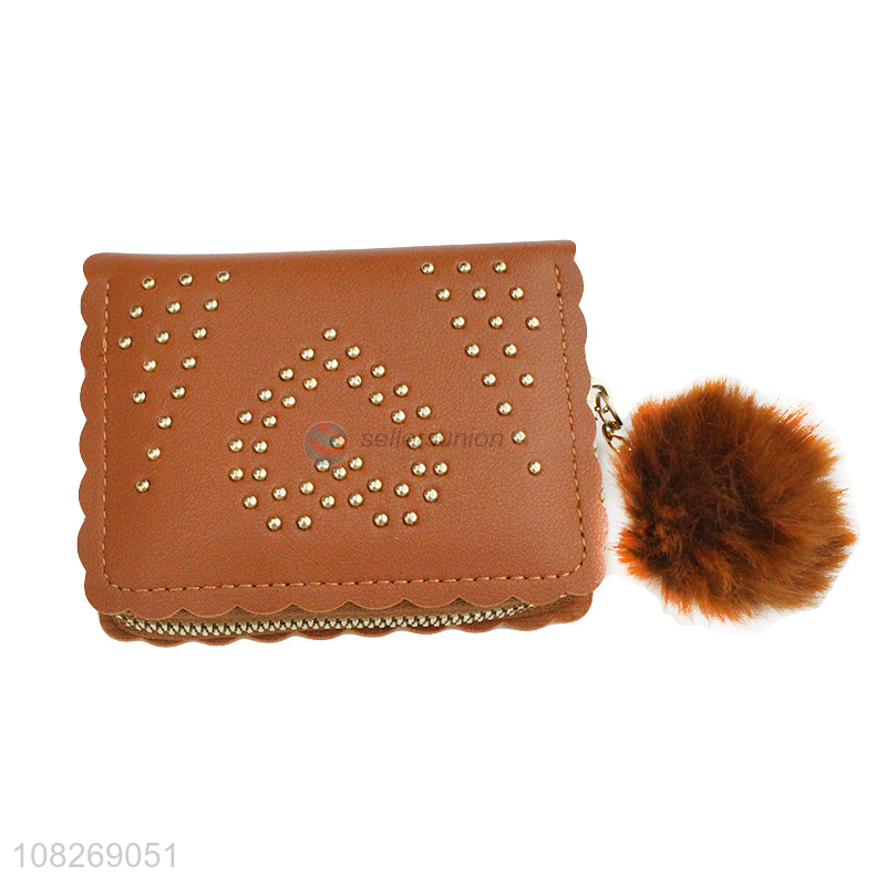 High quality pu leather pompom chain wallets card holder for women