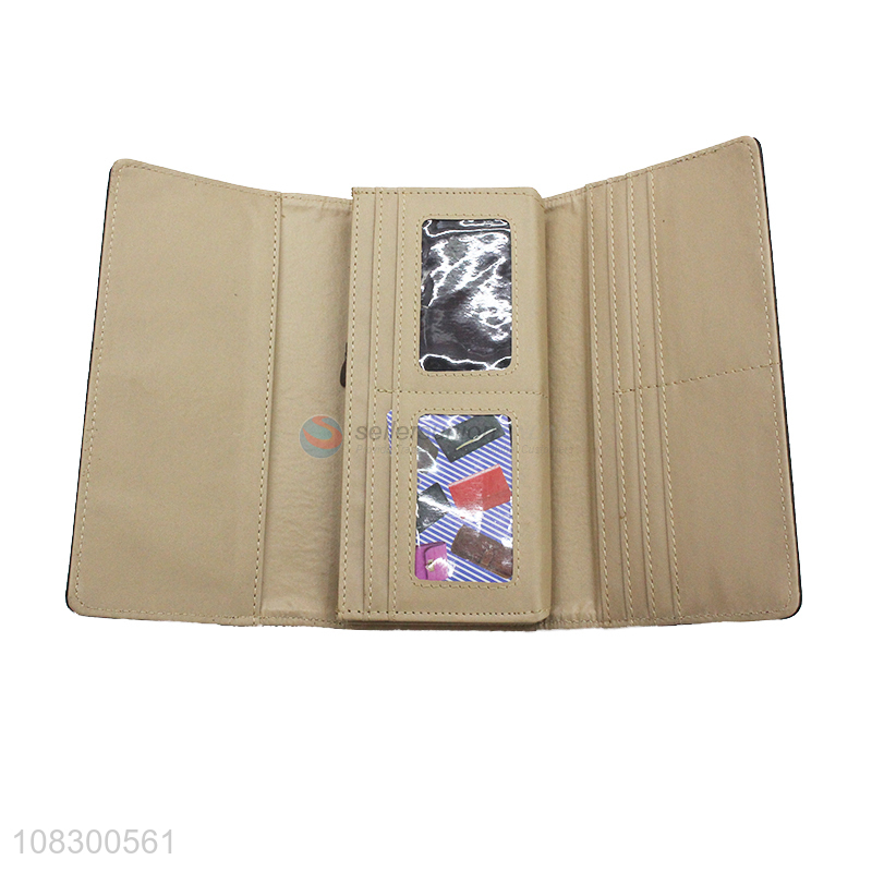 Good quality trifold women wallet purse faux leather clutch