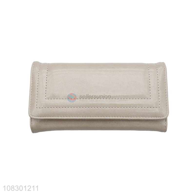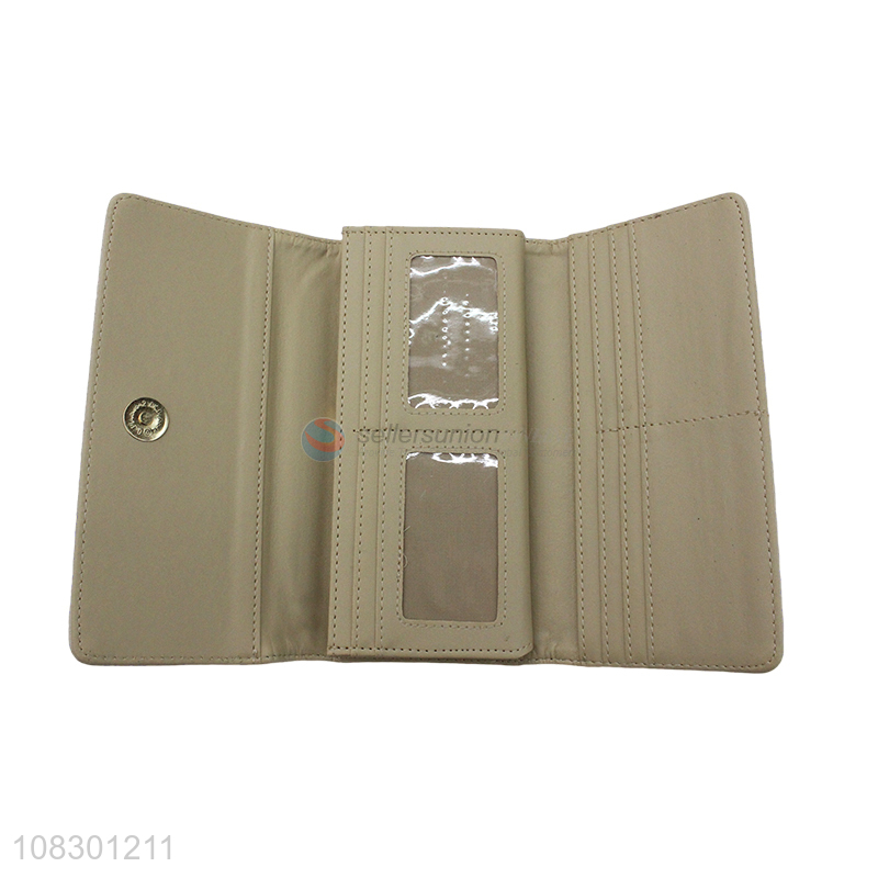 High quality faux leather long trifild wallet long clutch