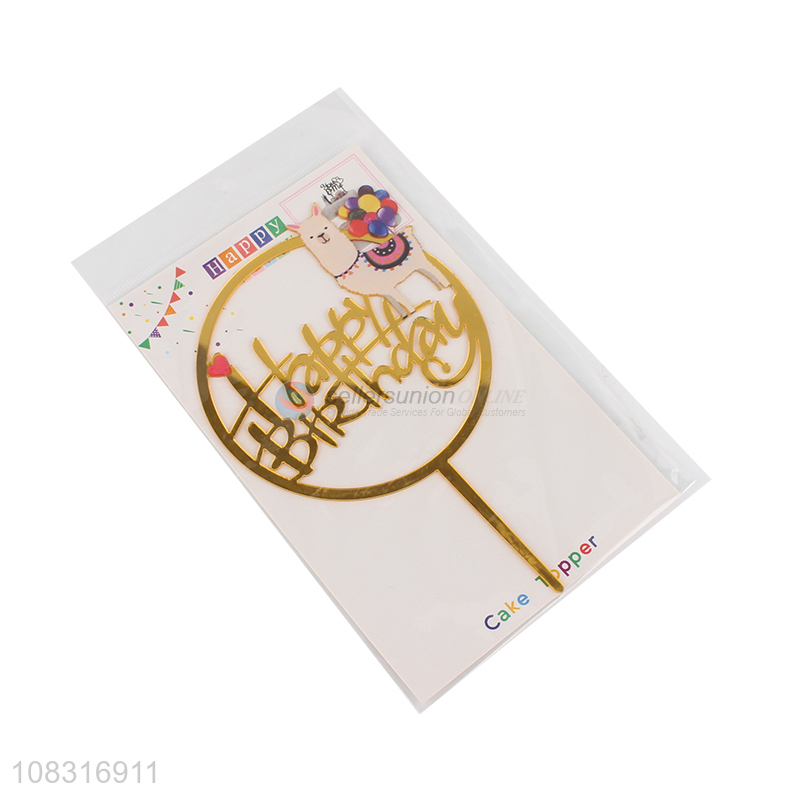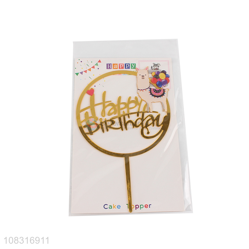 Best price round golden happy birthday cake topper for decoration