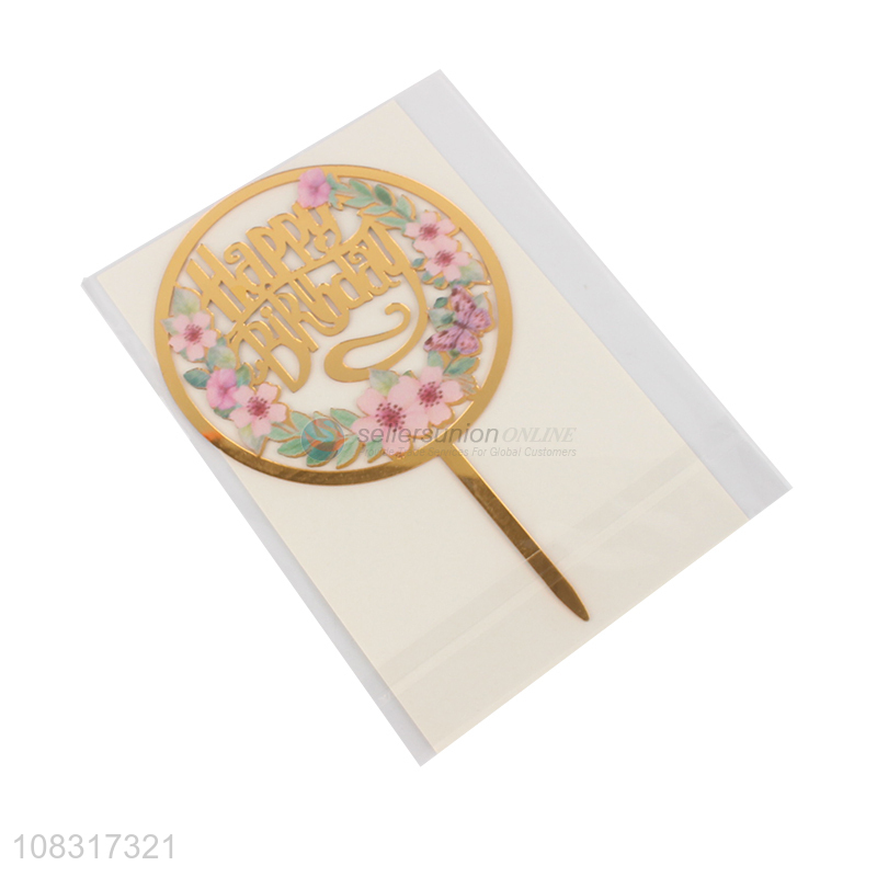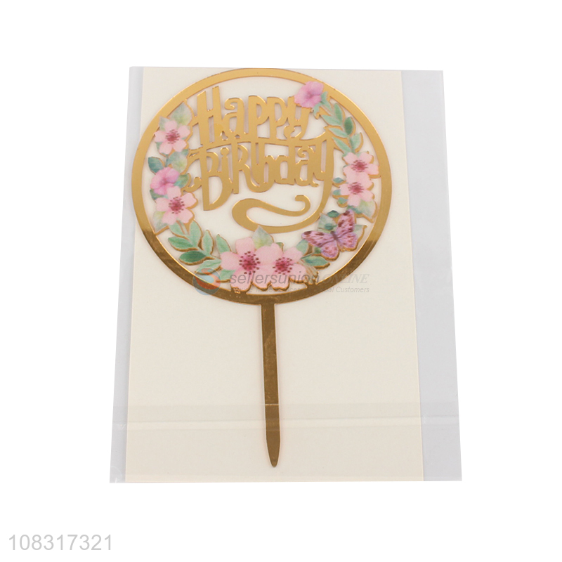 Best sale round acrylic happy birthday cake topper for decoration