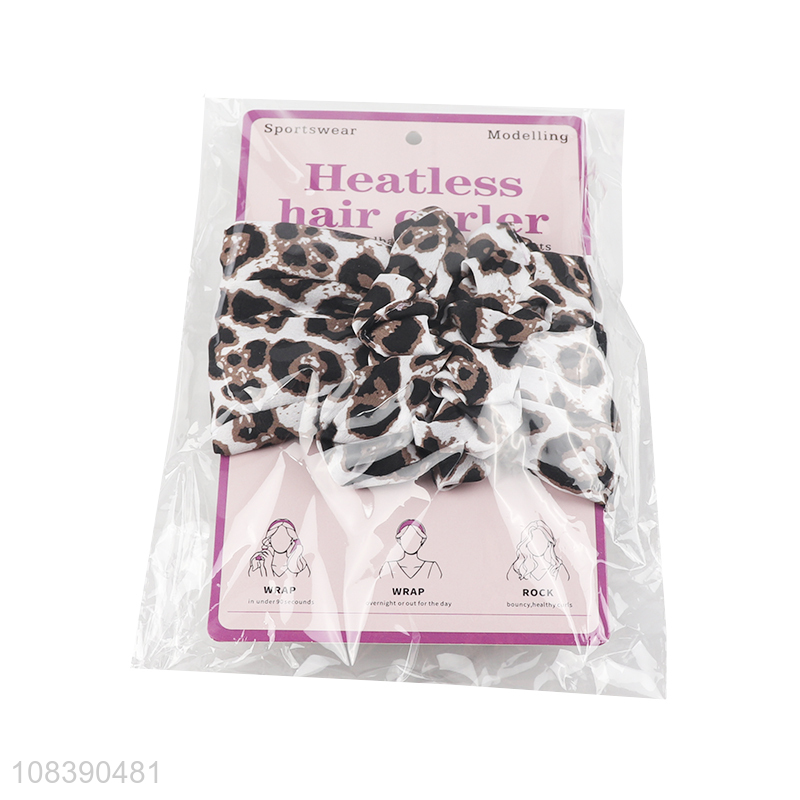 High quality stylish leopard print heatless curling rod headband set for women