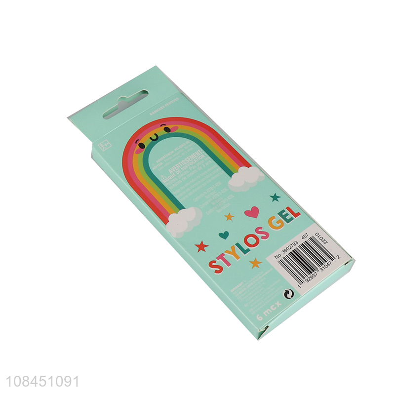 Hot sale school stationery 6pcs colored gel pens for drawing and coloring