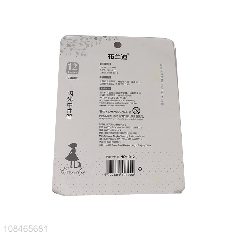 Best price 12colors non-toxic stationery glitter markers pen