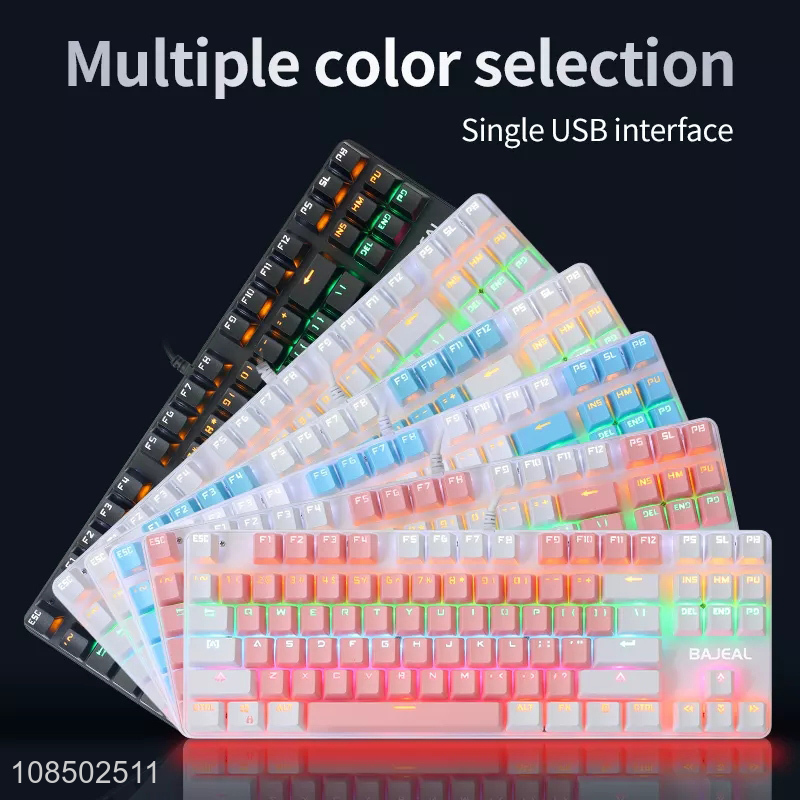 Wholesale 87 keys gaming keyboard RGB colorful wired gaming mechanical keyboard
