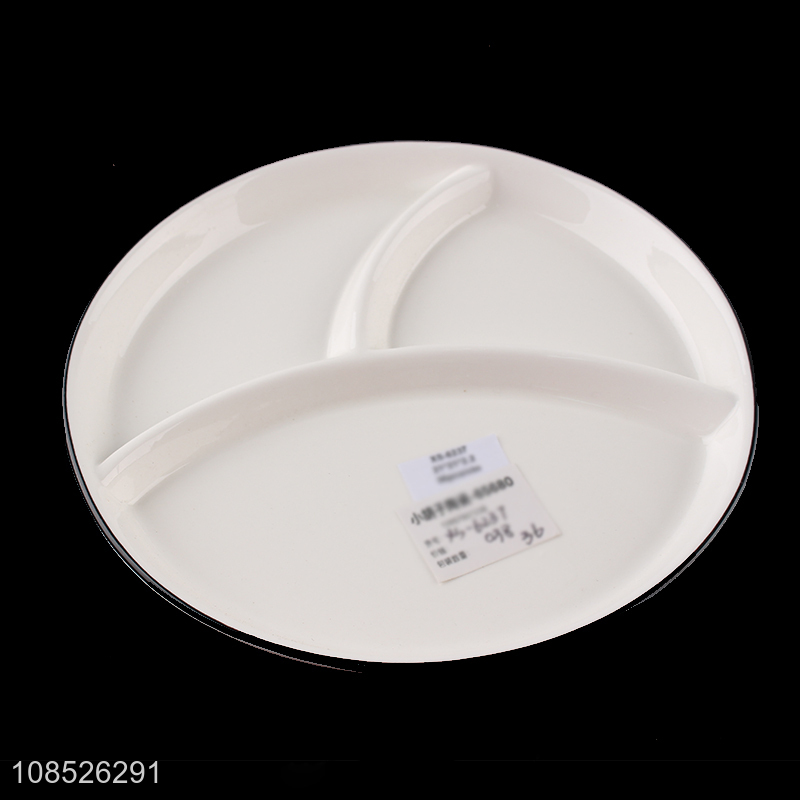 New products divided ceramic plate porcelain dish for snacks