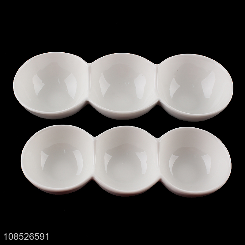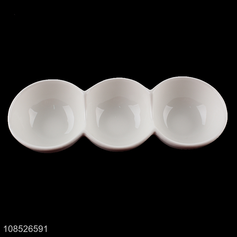 Good price 3-compartment divided ceramic dish appetizer plate