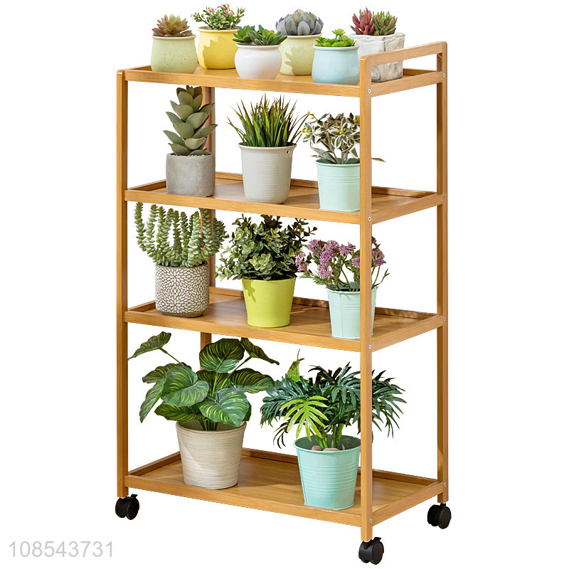 Hot selling indoor outdoor 5-tier bamboo plant stands with wheels