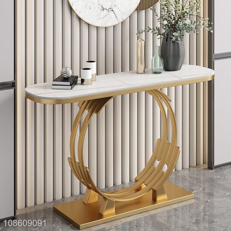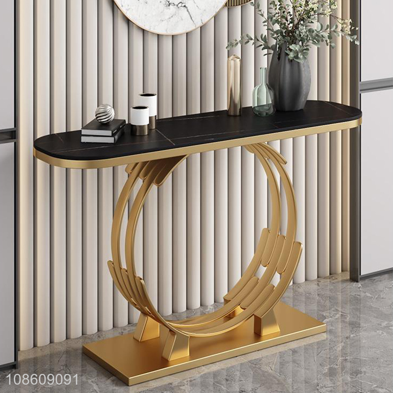 Good price durable narrow long metal frame marble console table