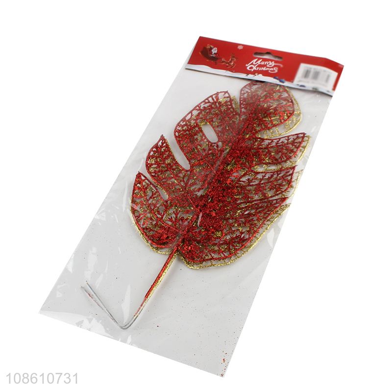 Best selling leaves shape glitter christmas ornaments decoration