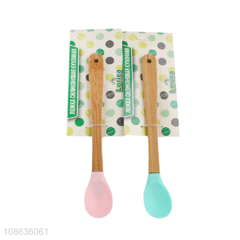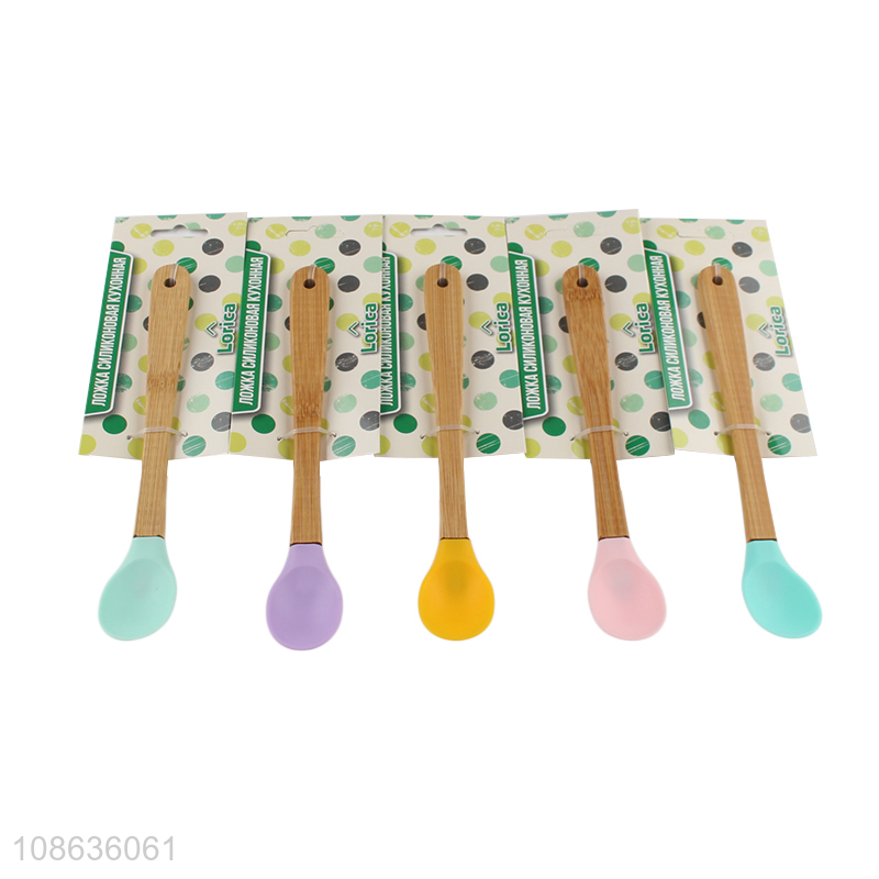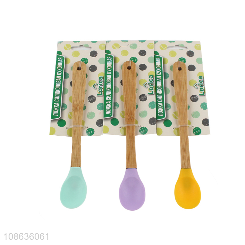China factory wooden handle silicone tableware spoon for sale