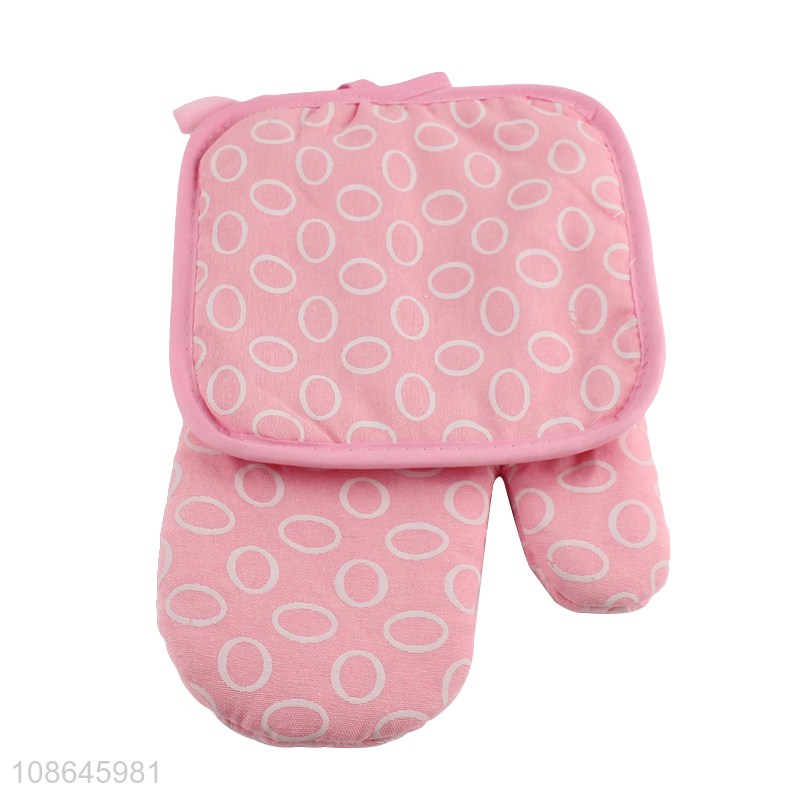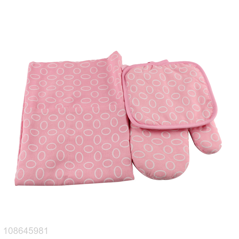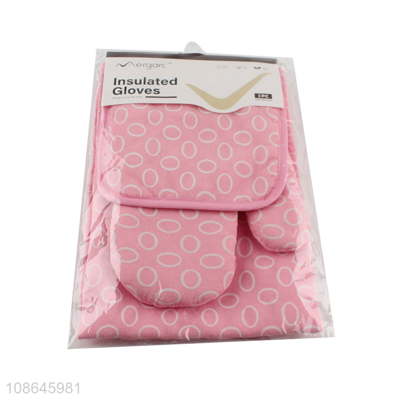 High quality 3pcs cotton oven mitt microwave glove set with towel & pot holder