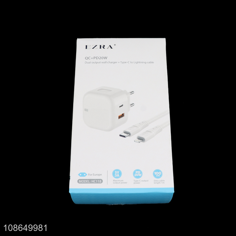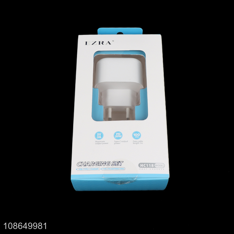 Wholesale 5V 3A QC3.0 PD20W charger EU C-L cell phone charger and cable set
