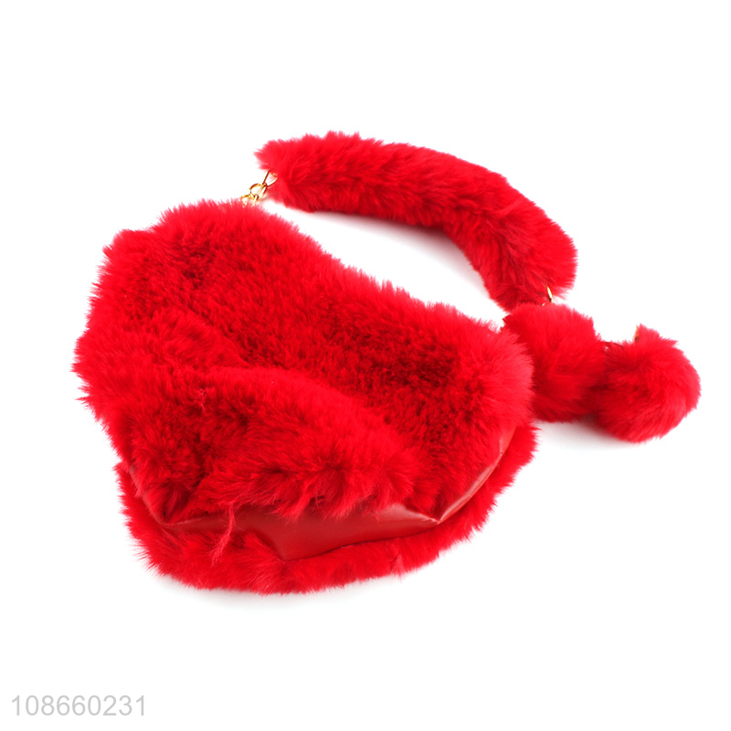 Good quality red heart shape plush handbag women bag for sale