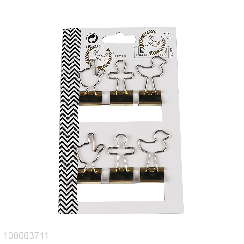 Good quality 6pcs creative metal file binding clips stationery clips