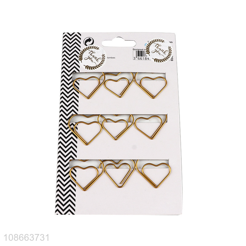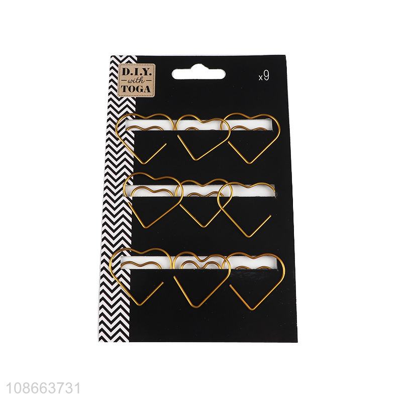 Good selling heart shape 9pcs paper clips binding clips for stationery