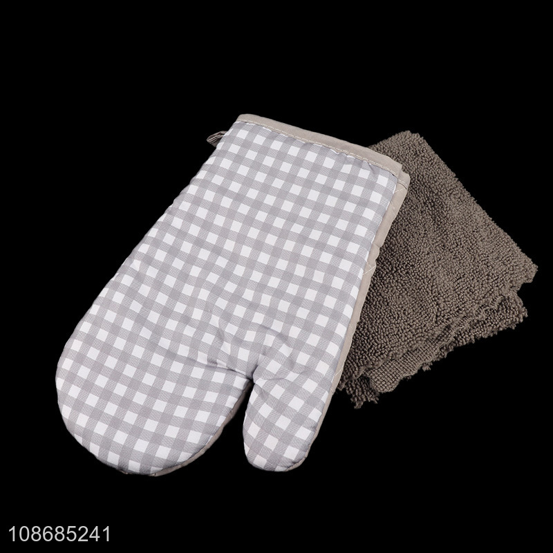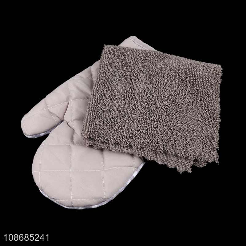 Good quality durable microwave oven mitt and cleaning towel set for kitchen