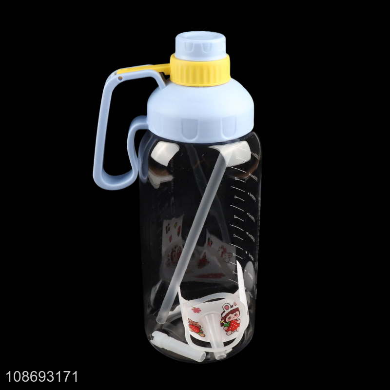 Low price portable sports water bottle straw drinking bottle with decorative sticker