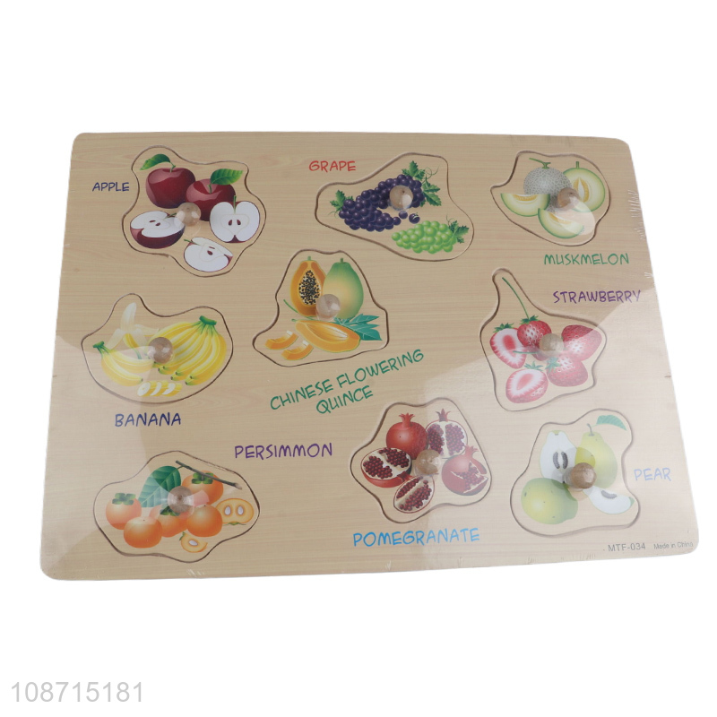 Most popular fruits series wooden baby hand-grip puzzle jigsaw toys