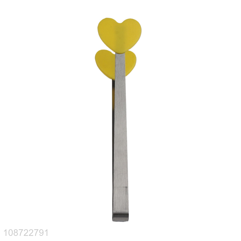 Wholesale stainless steel heart shaped silicone food tongs mini dessert tongs