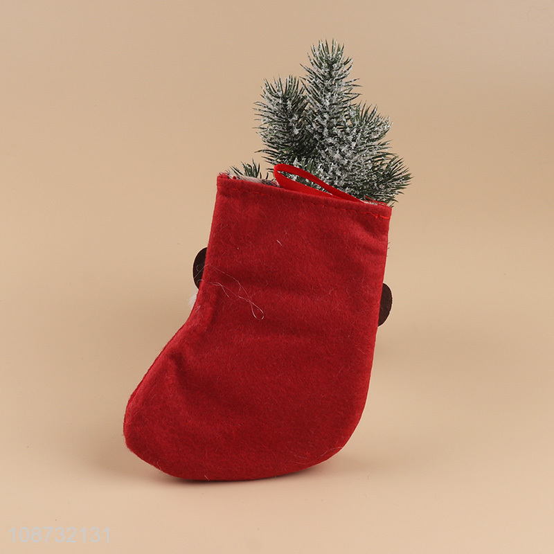 Factory price 3D soft plush fabric Christmas stocking bag with reindeer