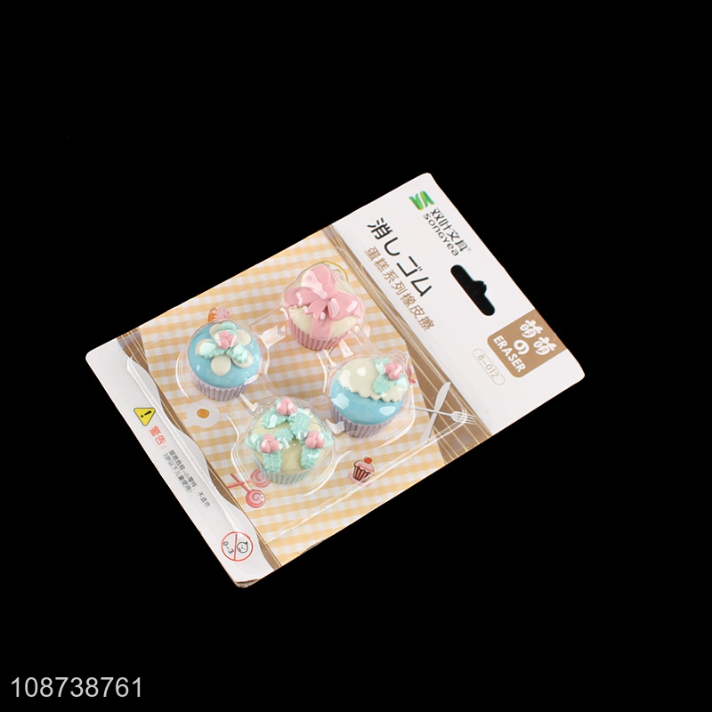 Hot selling 3D cupcake erasers pencil erasers for classroom rewards