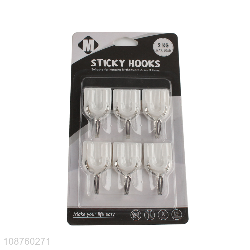 Most popular 6pcs white kitchen bathroom sticky hook set