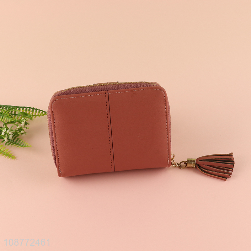 Good quality pu leather wallet card holder with tassel