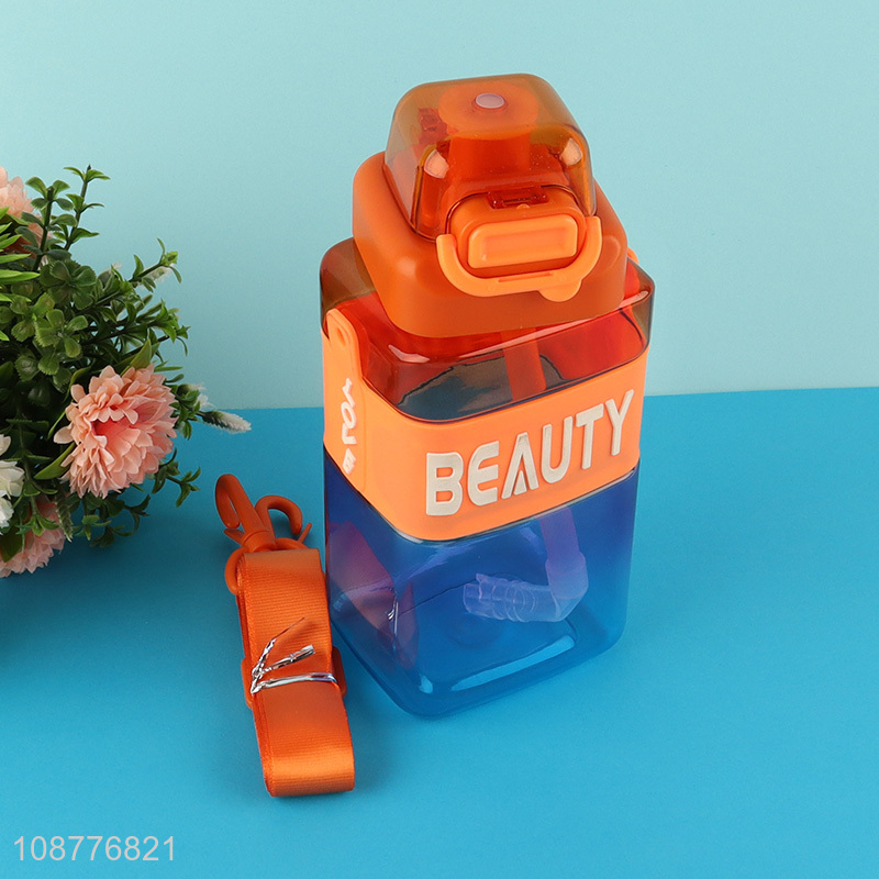 Wholesale plastic water bottle with straw & shoulder strap