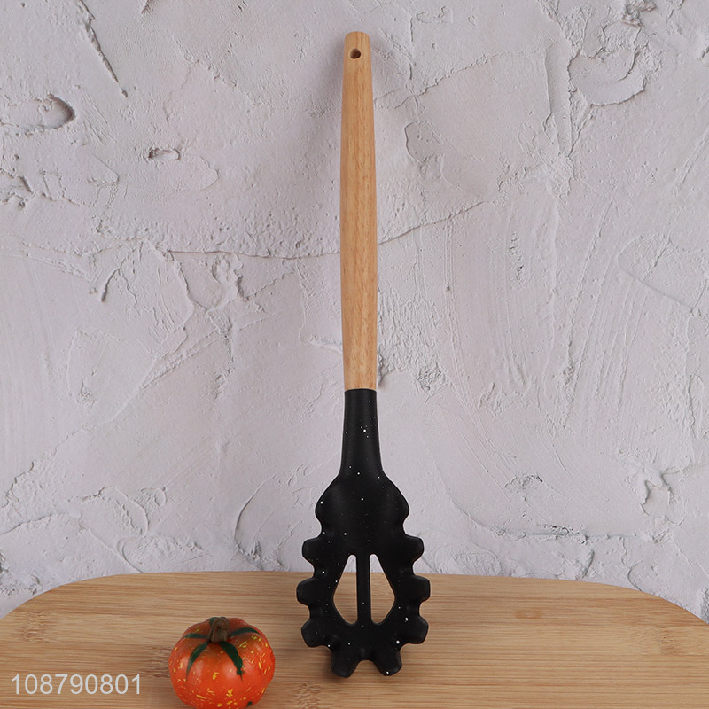 Wholesale wooden handle silicone pasta server spaghetti spoon