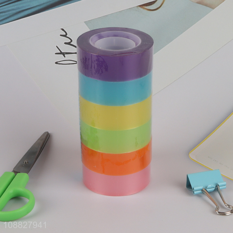 Hot selling 6pcs rainbow self adhesive tapes stationery tapes