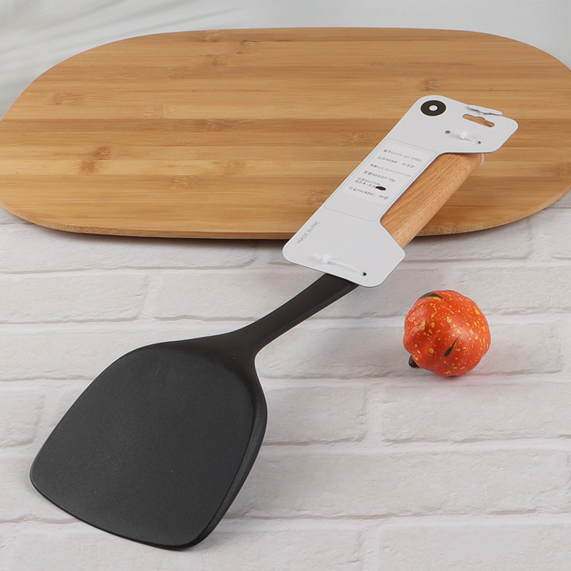 Wholesale heat resistant nylon Chinese wok spatula with wooden handle