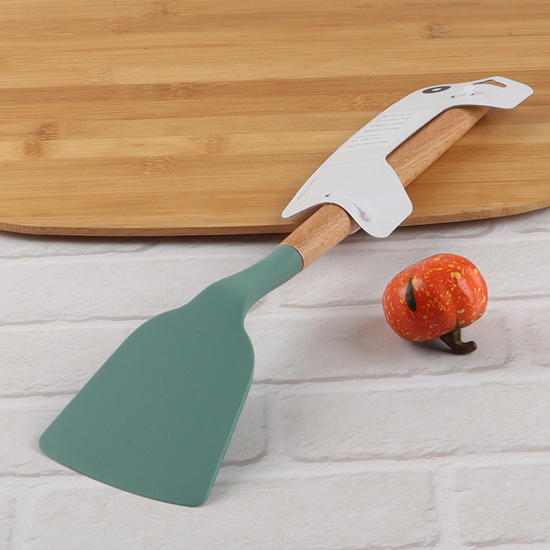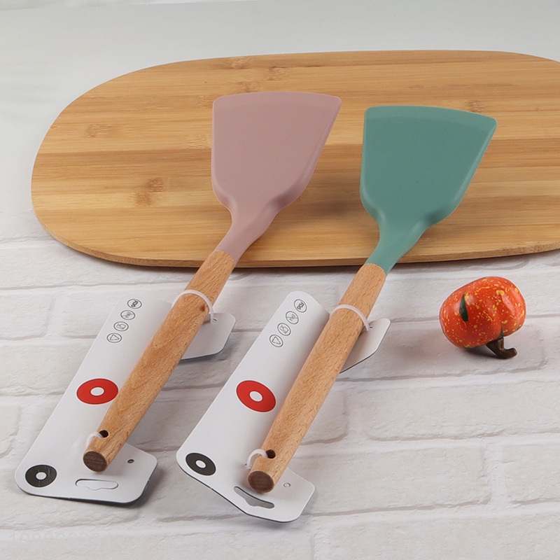 High quality heat resistant silicone spatula turner with wooden handle