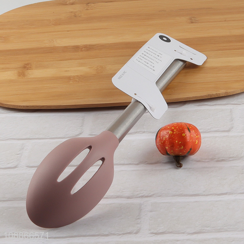 Wholesale cooking tool silicone nylon slotted ladle with stainless steel handle