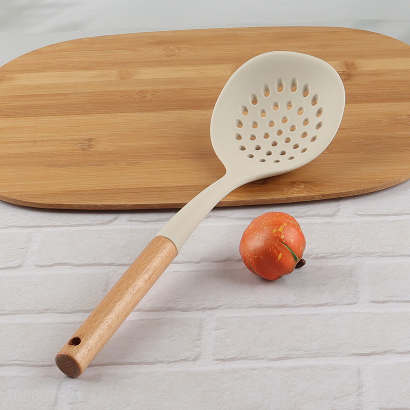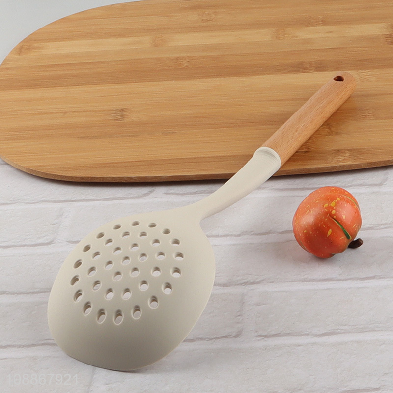 High quality silicone cooking skimmer slotted spoon with wooden handle