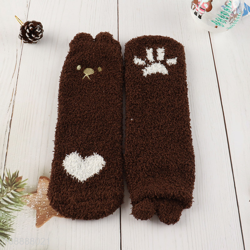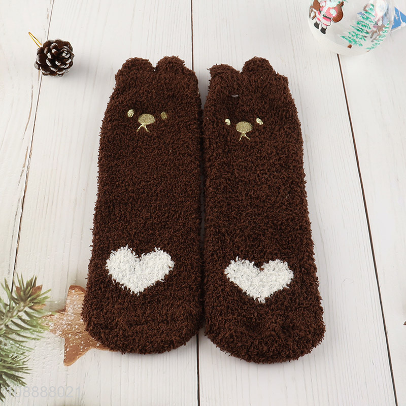 Wholesale womens winter socks cute fuzzy microfiber slipper socks