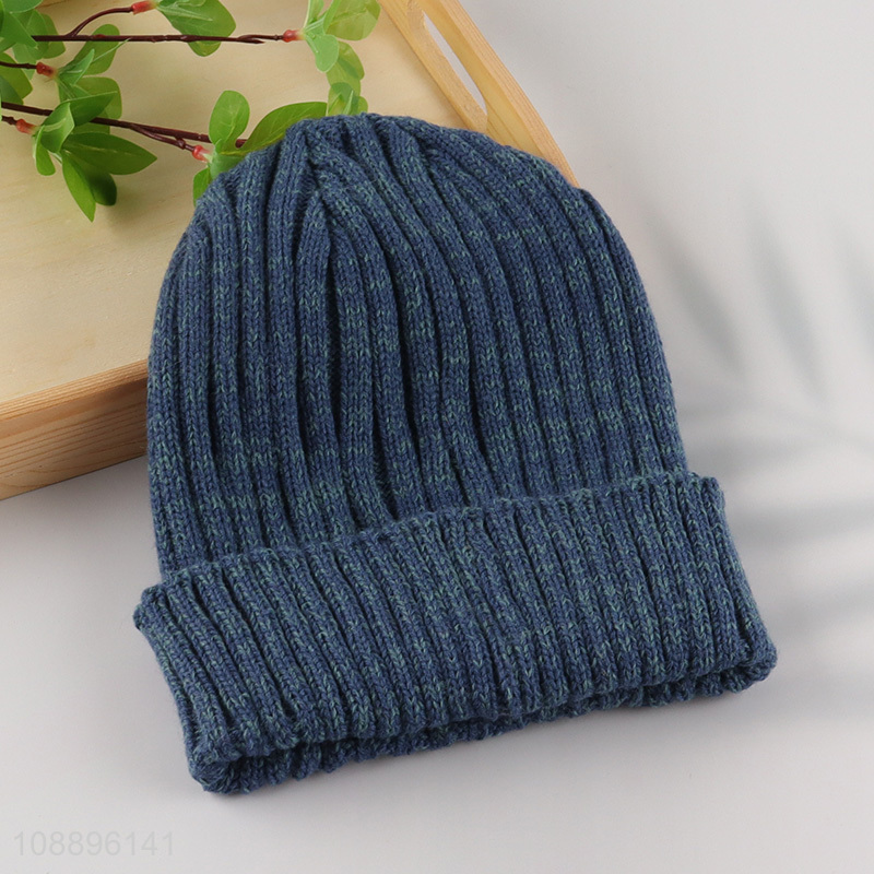 Promotional winter knitted beanie hat ribbed ski cap for men women