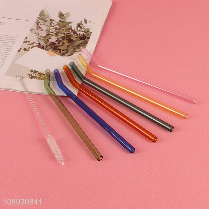 High Quality 6+1 Colorful Bent Glass Straws for Hot and Cold Drinks