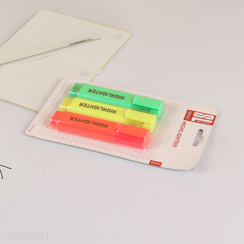 Hot Selling 3PCS Chisel Tip Highlighters Marker Pens for Students
