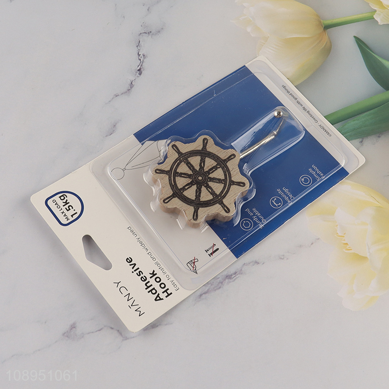 Online Wholesale 1PC Rudder Shape Wooden Hook Wood Sticky Hooks